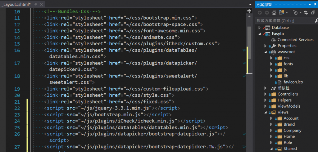在開發 ASP.NET MVC 5 時,css、fonts、js…等等的靜態檔案(Static Files),都是放在專案裡頭的 Content 的資料夾,但是在開發 ASP.NET Core 3.0 的時候,我們特別要注意的是,要必須 把HTML 所用到的靜態檔案放到 wwwroot 裡頭。