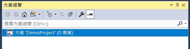 Step07. 右下角的「確定」按鈕之後,方案總管只會有一個空的方案,沒有任何專案在裡面