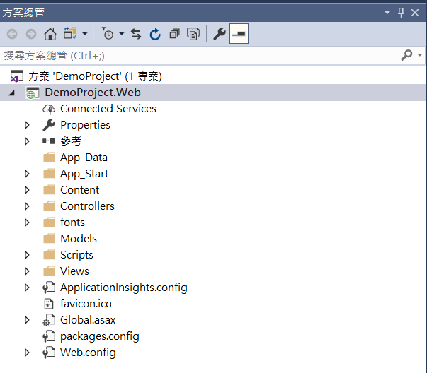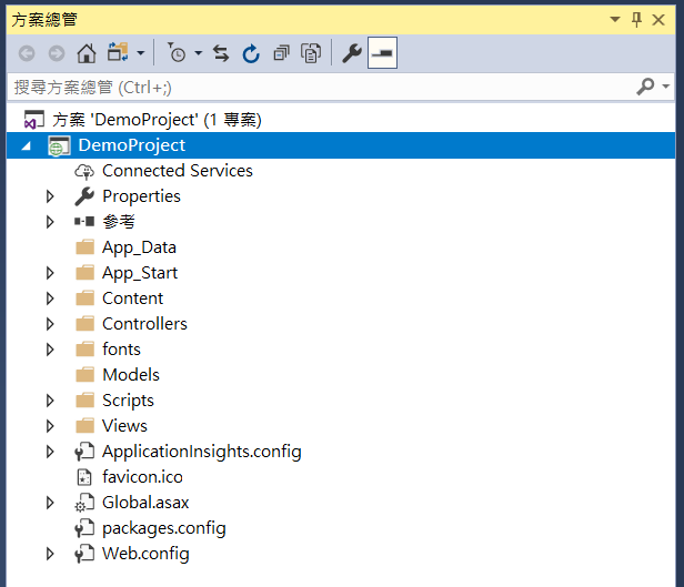 • 這種開新專案的方法,方案名稱跟專案名稱會是同樣的名稱(DemoProject)
