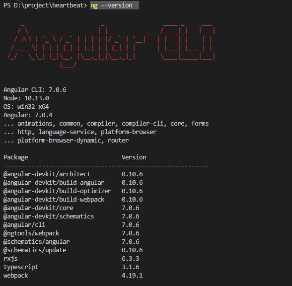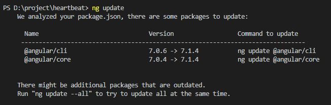 在進行專案更新前,可以先 ng –version 看看,系統會告訴你專案目前的版本,如: