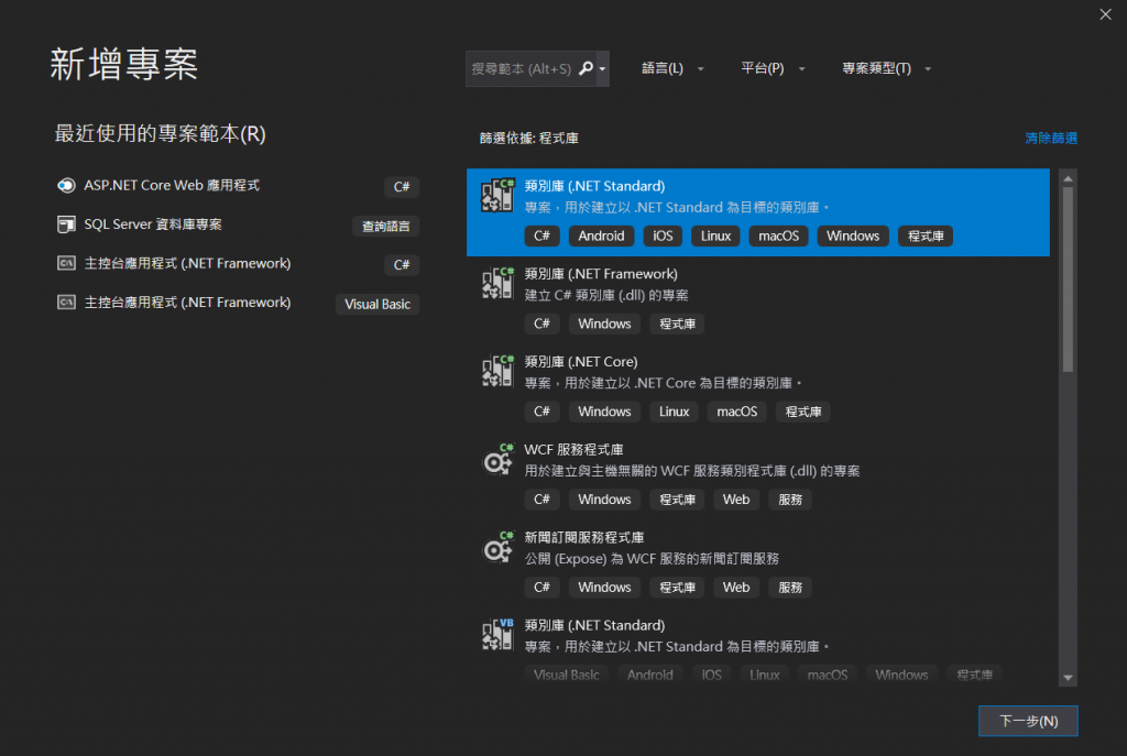 選擇類別庫( .NET Standard)